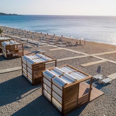 Комплекс включает несколько корпусов с номерами различных категорий, включая семейные номера и люксы с панорамным видом на море. В номерах предусмотрены современные удобства, балконы или террасы и зоны отдыха.