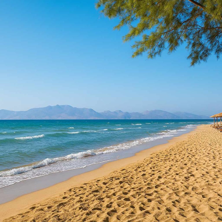На северном побережье популярны пляжи в районах Кос, Мармари и Тигаки - с песчаным берегом и удобным входом в море. Южное побережье, включая Кардамену, предлагает более тёплое и спокойное море, идеально подходящее для купания.