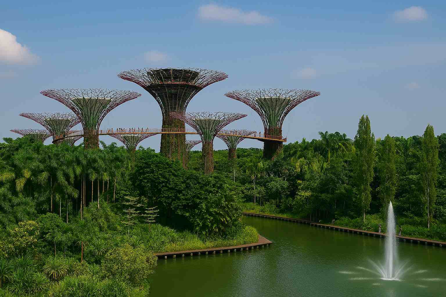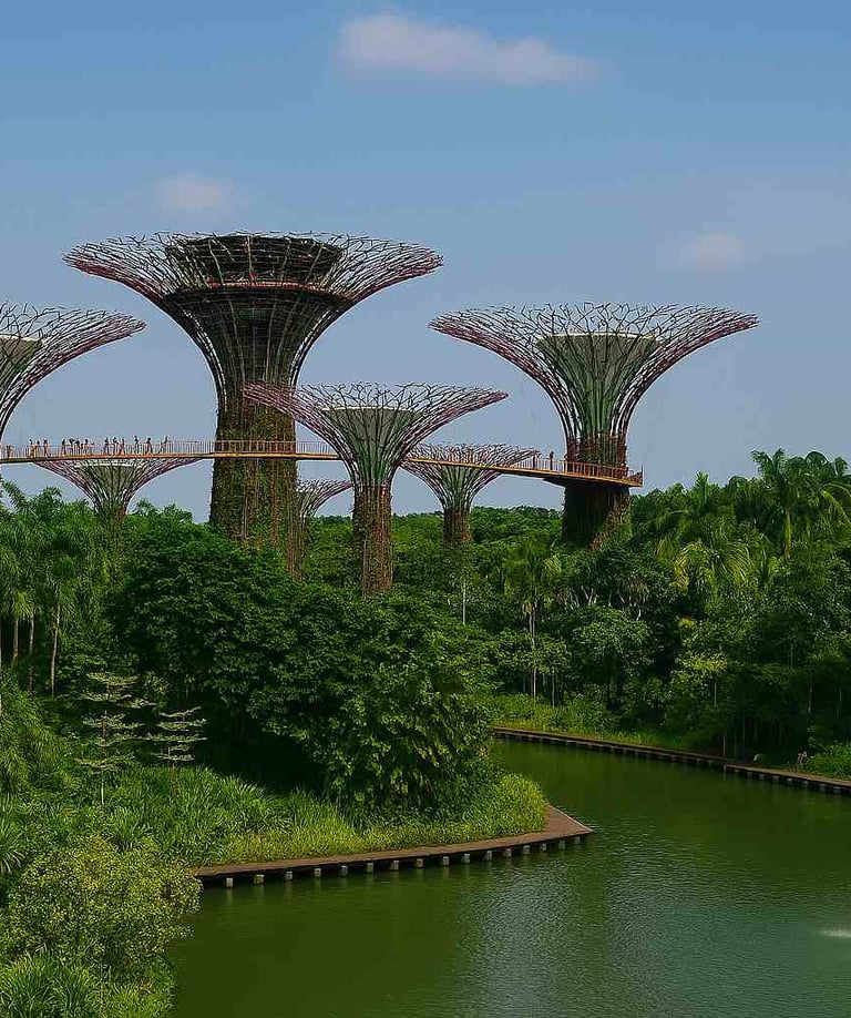 Gardens by the Bay - футуристический парк площадью более 100 гектаров. Его знаменитые «супердеревья» достигают высоты до 50 метров, а между ними проходит подвесная аллея OCBC Skyway. Вечером здесь проходит светомузыкальное шоу. В павильонах Flower Dome и Cloud Forest представлены растения со всего мира и впечатляющий искусственный водопад.