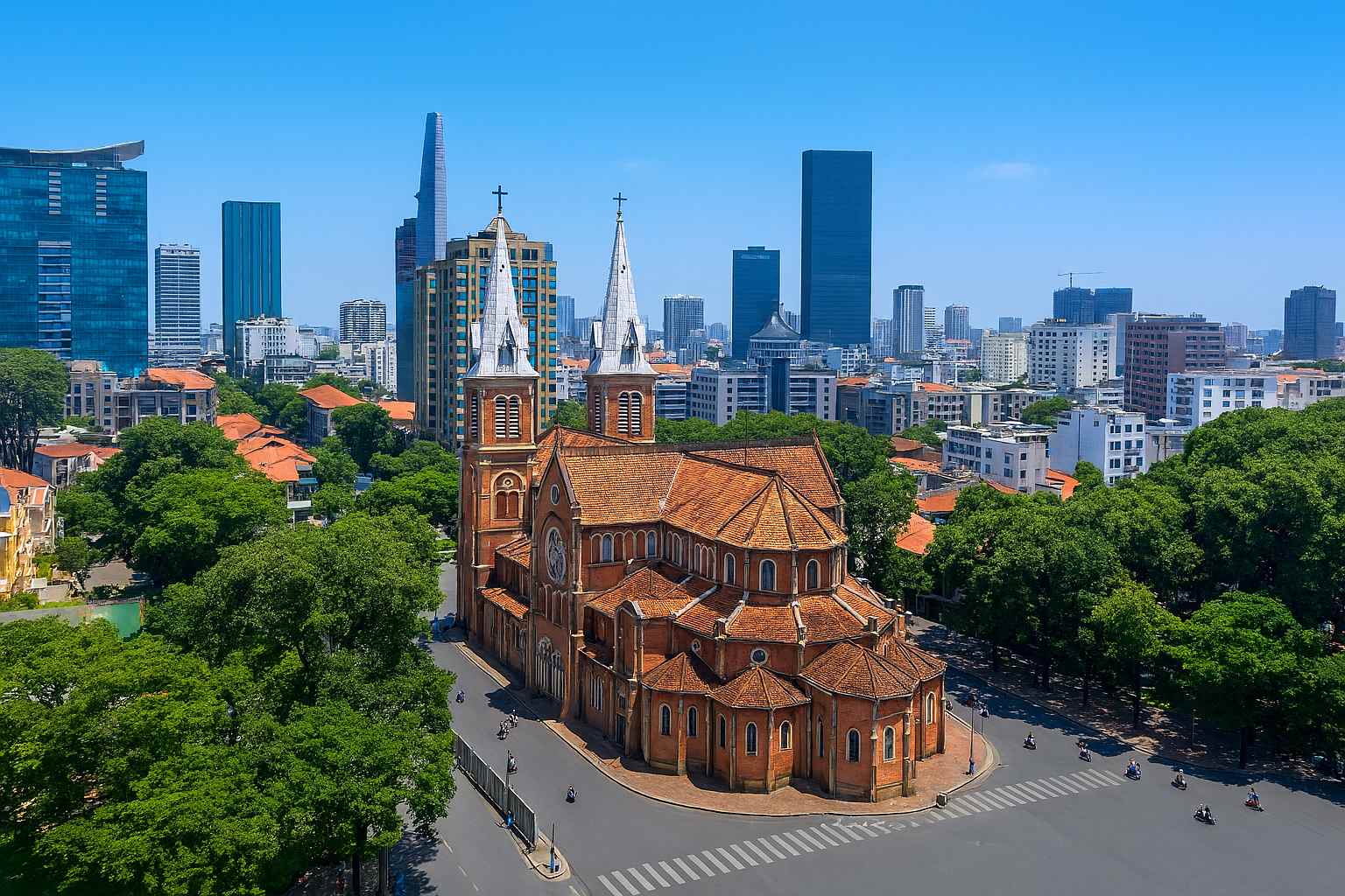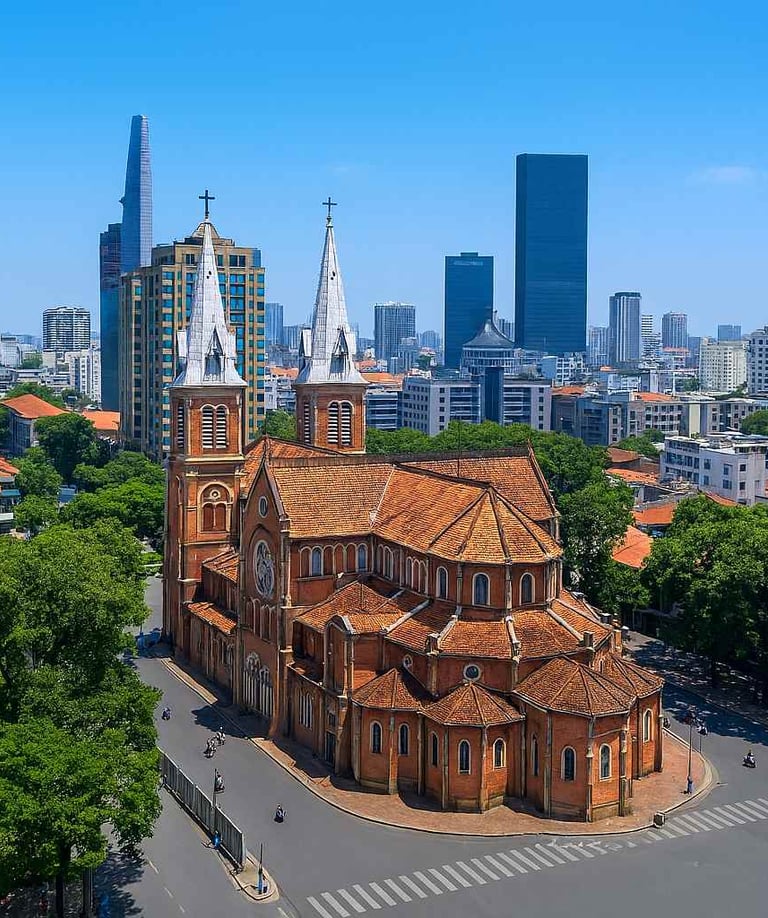 Собор Нотр-Дам (Saigon Notre-Dame Basilica) - символ города, построенный французами в XIX веке, с ярко-красным кирпичом и витражами.
