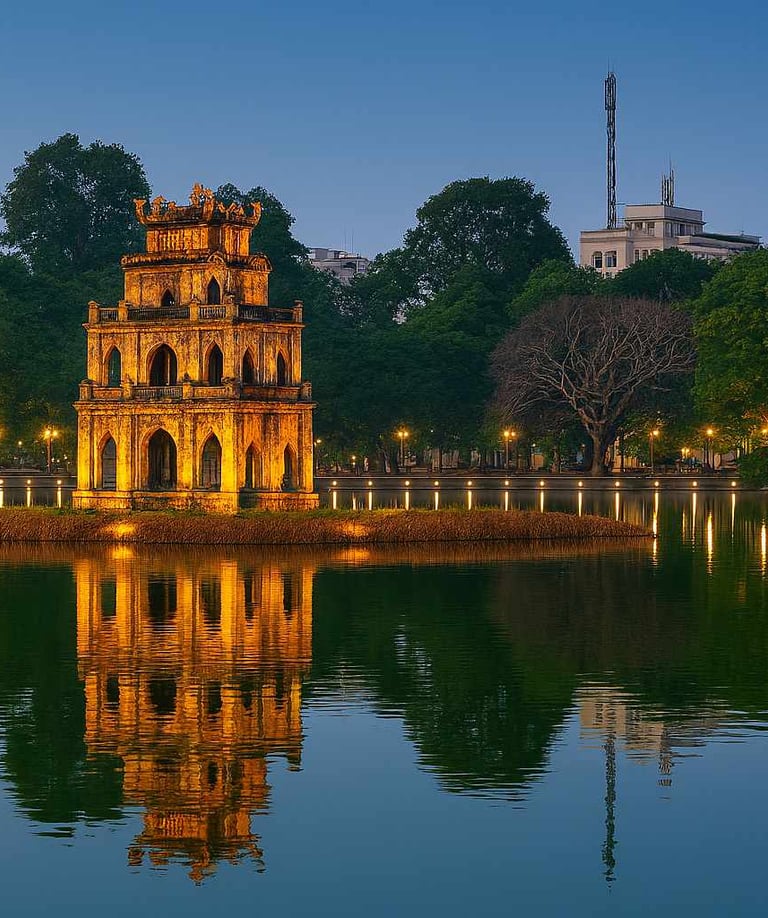 Ханой, столица Вьетнама - город контрастов, где древние пагоды и колониальные здания соседствуют с современными небоскрёбами и оживлёнными улицами. Прогуливаясь по Ханою, можно увидеть, как традиционная вьетнамская жизнь переплетается с динамичной городской атмосферой: утром жители едят фо на улице, днём оживлённые рынки манят туристов, а вечером уютные кафе и бары оживляют старый квартал.